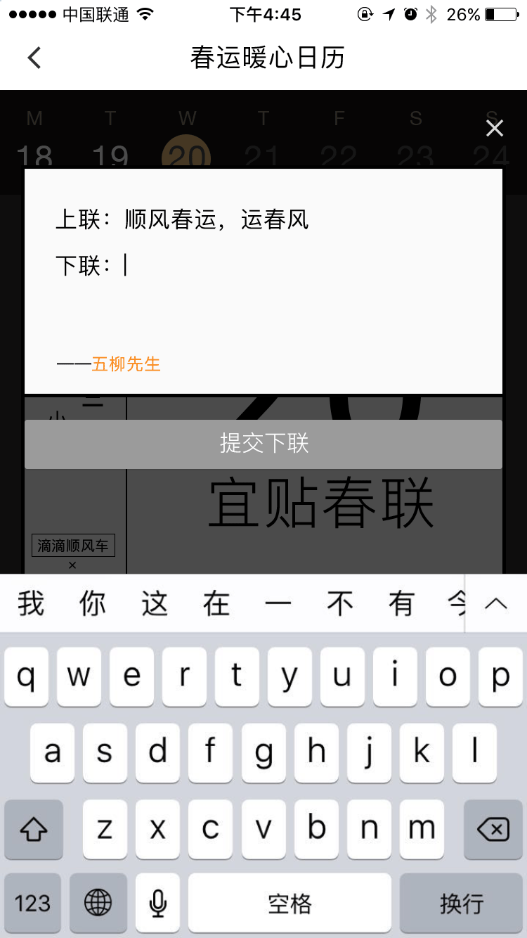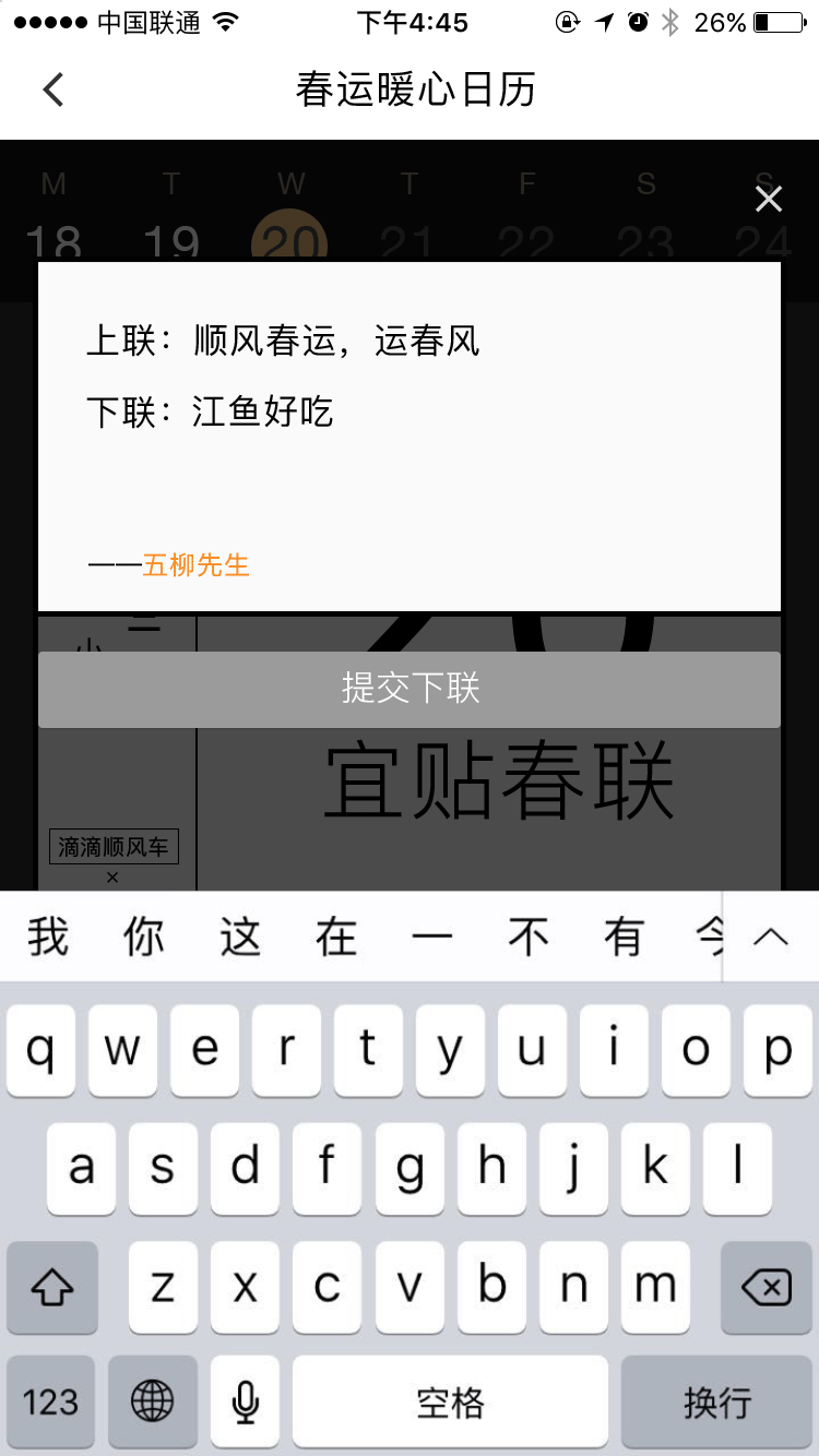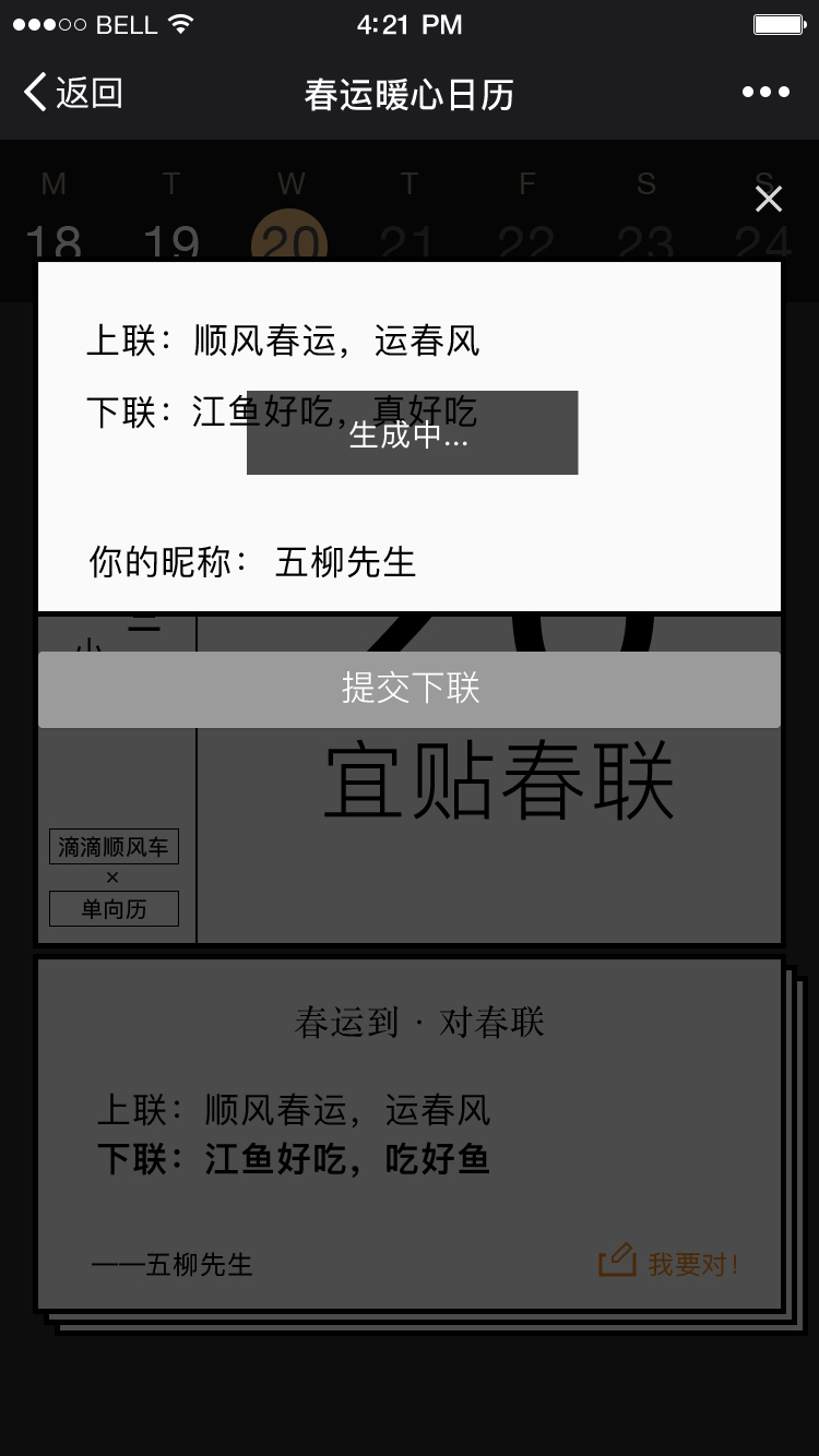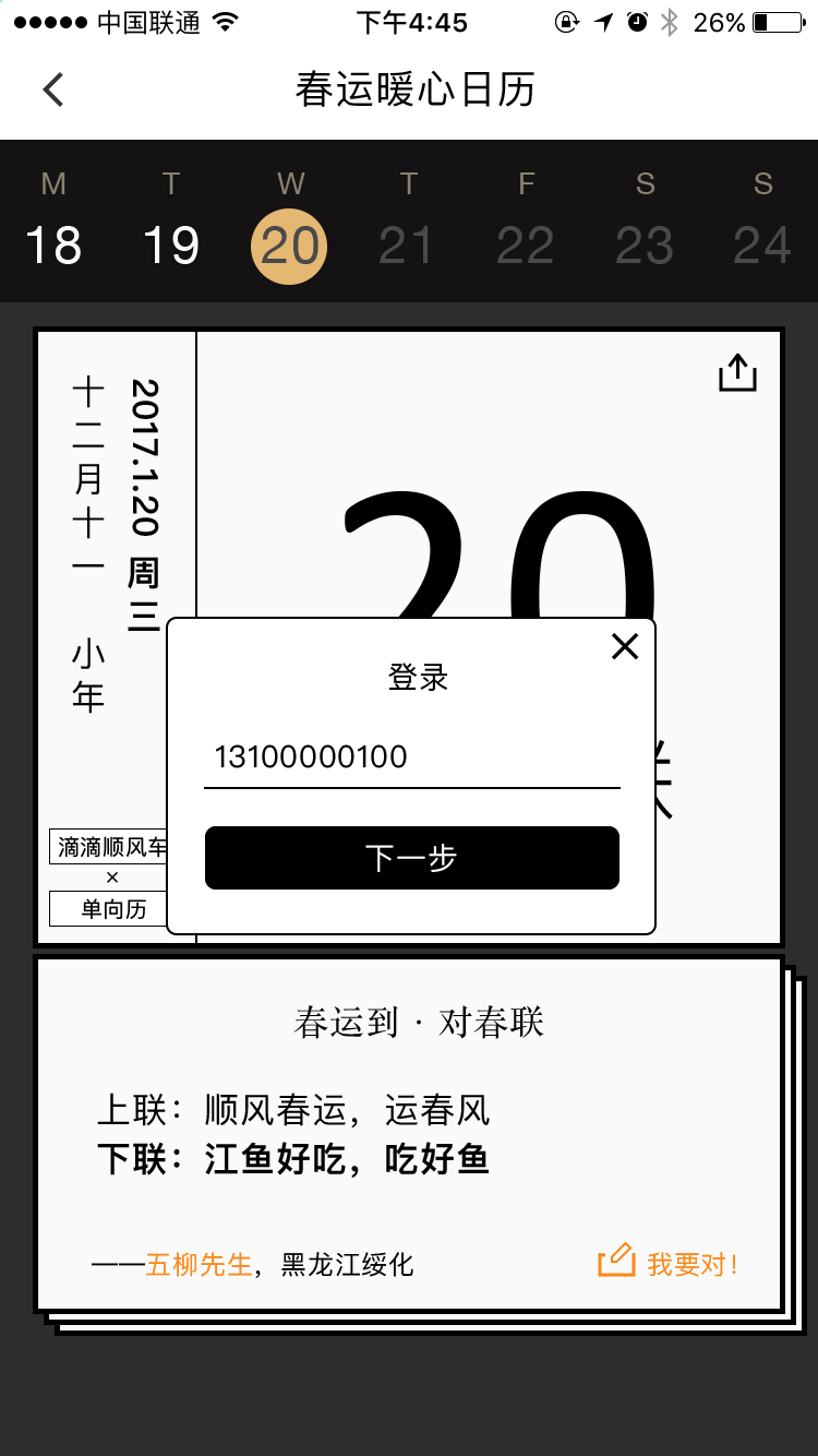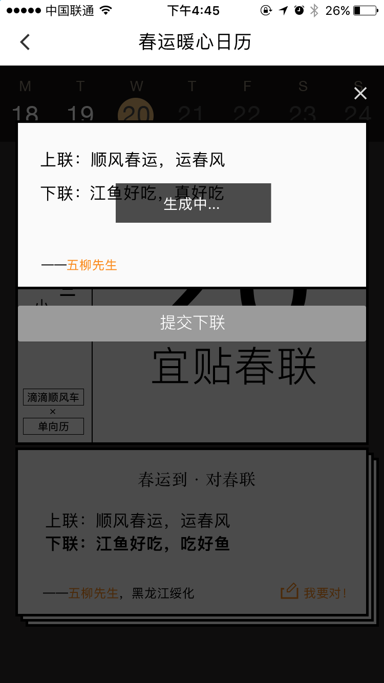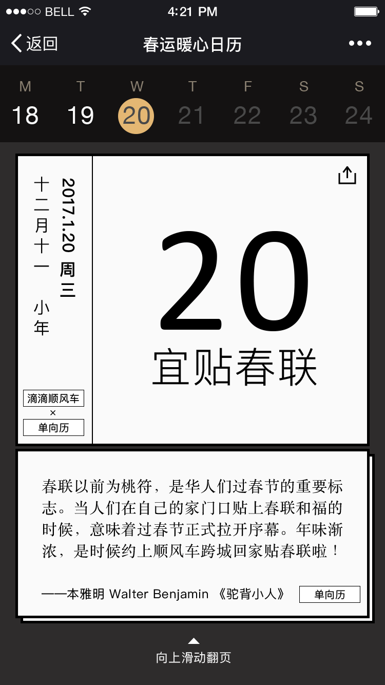 Spring Festival Transportation Calendar: This is a promotion webpage developed in collaboration with One-Way Street Bookstore. To attract user interaction, we added a traditional Chinese couplet game to the page. Additionally, to match the partner's product style, we incorporated some micro animations into the design.